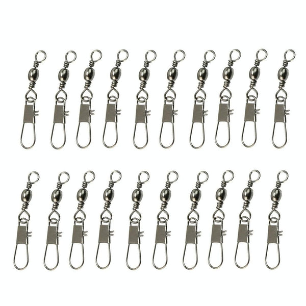 20pcs 8# 3.5cm Fishing Connectors Barrel Swivel with Safety Snap Ring