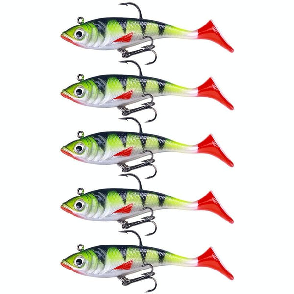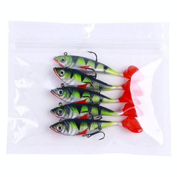 5pcs /Pack HENGJIA SO071 T-Tail Lead Fishing Lure Lua Fishing Soft Bait, Size: 8.5cm 10.6g(Green)