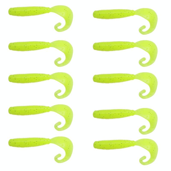 6cm 10pcs /Pack HENGJIA Curved-Tail Soft Dummy Bait Freshwater Fishing Lures(Light Yellow)