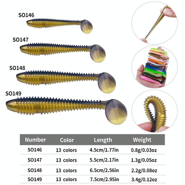 5. Threaded structure, the soft bait is more dynamic when swimming and generates a flow around the bait