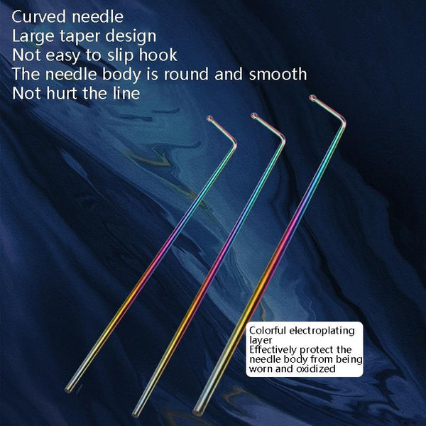 4. Curved tip needle, large taper design, not easy to slip hook, round and smooth needle body, no thread damage, color electroplating layer, effectively protect the needle body from wear and oxidation