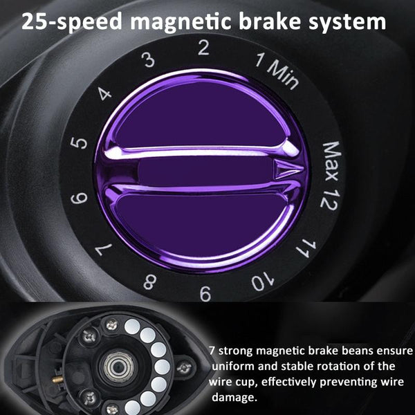 2. 25-speed magnetic brake system, which prevents line damage by adjusting the magnetic brake gear. The larger the number, the greater the braking force.