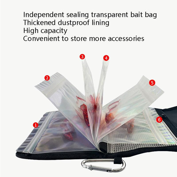 Splitable Fish Bait Bag With 6 PVC Self-Sealing Stickers Classification Storage Hanging Bag(Army Green)