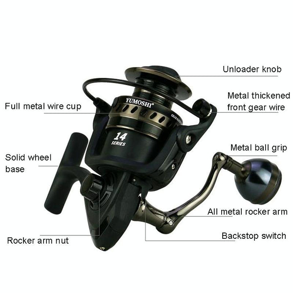 YUMOSHI LS7000 Metal Head Fishing Reel Sea Rod Spinning Reel(Metal Swing Arm+Metal Grip Pill)