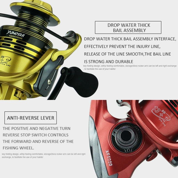 YUMOSHI XF2000 Full Metal Swing Arm Metal Head Fishing Reel(Gold)