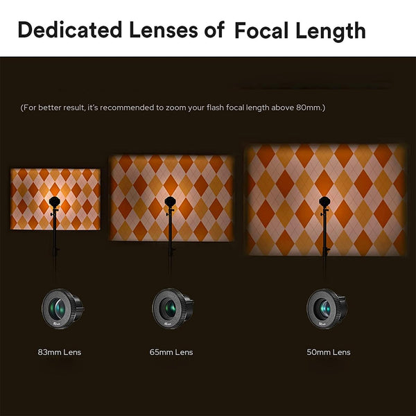 5. The Godox 65mm Lens is designed for the AK-R21 Projection Attachment and alters the beam angle of the light being transmitted through the attachment. Offered in three different configurations, this 65mm lens provides a medium beam angle when using the attachment.