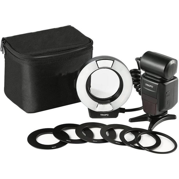 TRIOPO TR-15EX Macro Ring TTL Flash Light with 6 Different Size Adapter Rings For Canon E-TTL(Black)