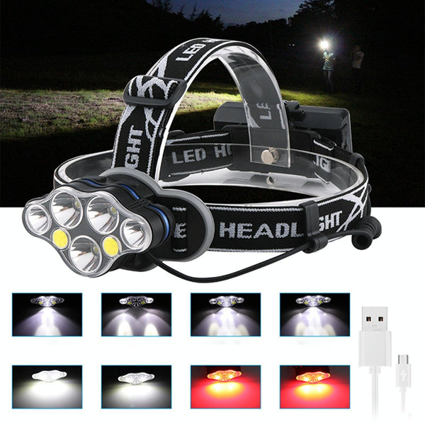7 LEDs 7000K High-power Strong Light USB Rechargeable Outdoor Fishing Waterproof Headlight (Headlamp+USB Cable)
