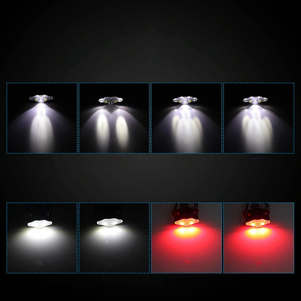 Illumination gear: Right button: 3T6 white light, 2XPE white light, 5 light white light, 5 light white light flash; Left key: 2COB white light intensity, 2COB white light weak,-2COB red light, -2COB red light flash.