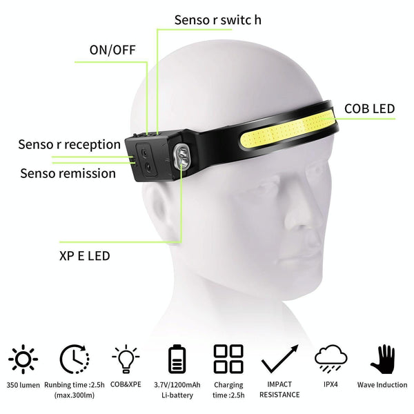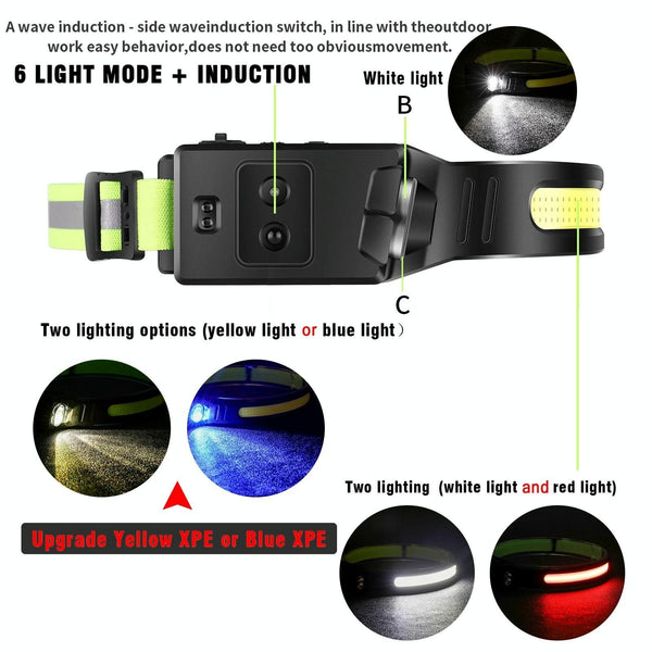 Fluorescent Belt Sensor Headlight Outdoor Running and Cycling Head Torch(White+Yellow Light)