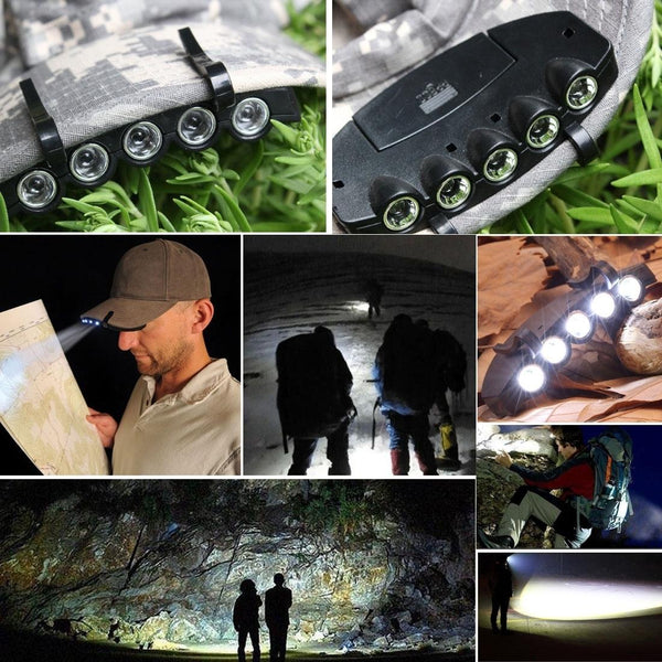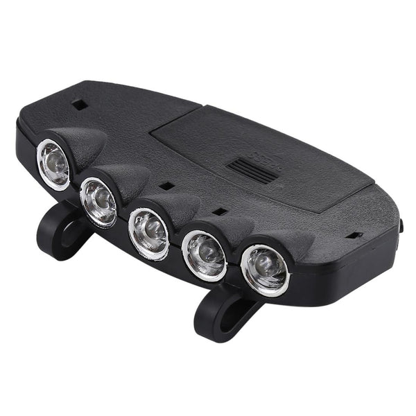 Head Light Lamp Cap Torch Bulb, 5 LED White Light, for Outdoor Fishing Camping Hunting(Black)