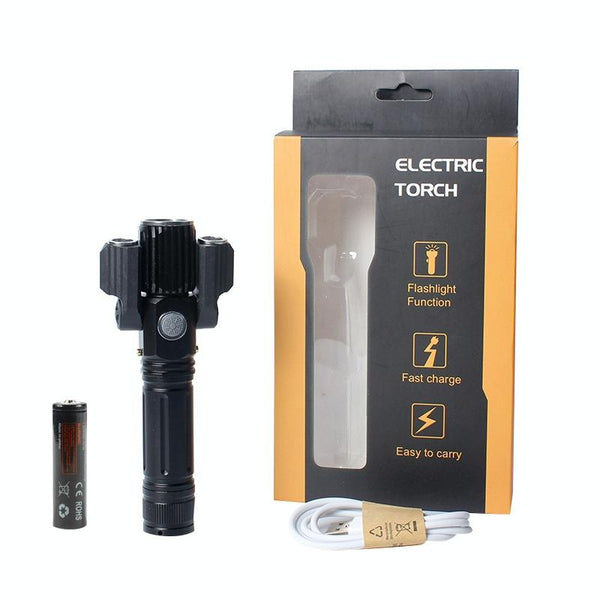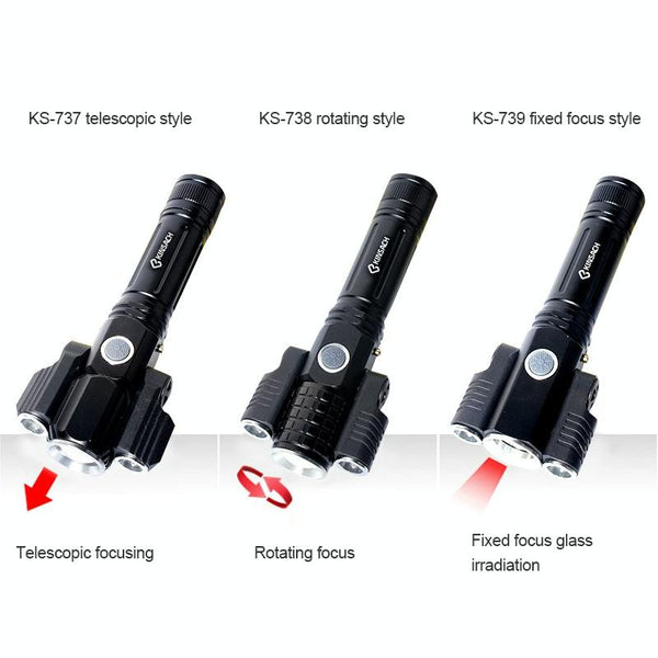 KS-738 USB Charging Waterproof T6+XPE Zoomable LED Flashlight with 4-Modes & 18650 lithium battery