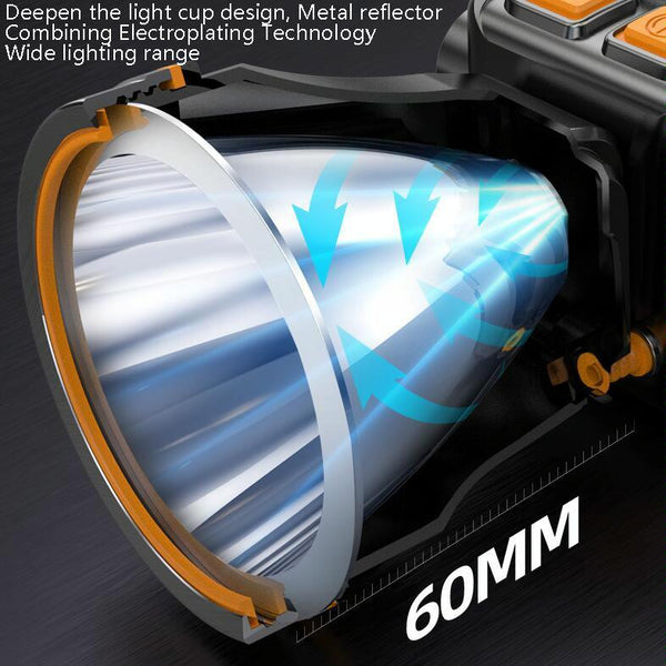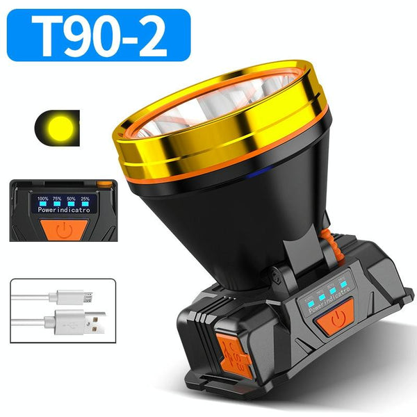 LED Night Fishing Charge Head Light Outdoor Camping Fishing Miner Light Searchlight Head-Mounted Flashlight With Charge Display, Colour: 40 Lamp Beads Yellow Light