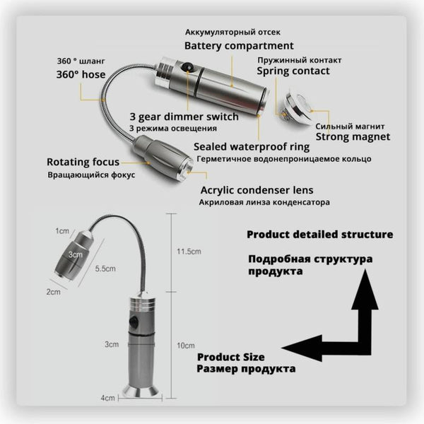 Multi-functional with Magnet Charging Rotary Zoom Turn Work Light Glare Flashlight, XPE Dry Battery(Silver)