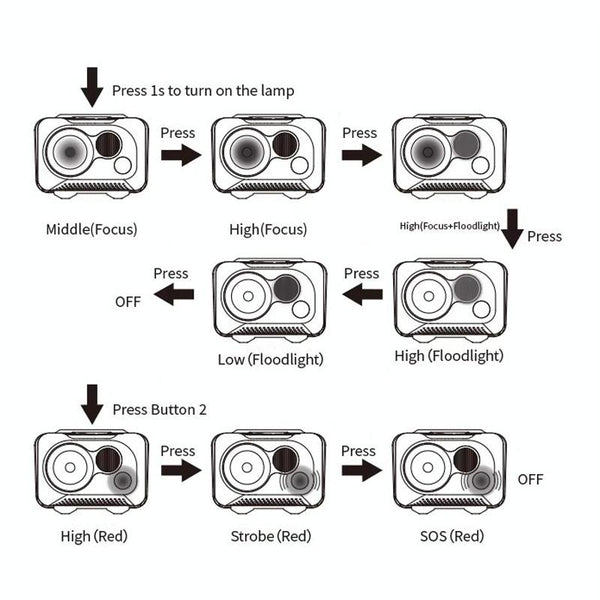 2. Dual button operation, three light sources free switching, suitable for a variety of outdoor environments