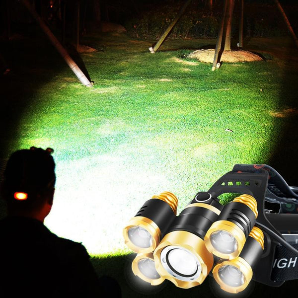 Rechargeable Waterproof Outdoor Headlight Zoom Sensor Light, Colour: Golden Induction (2 Batteries 1 Charger)