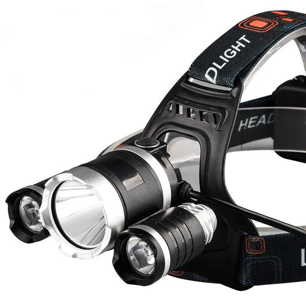 Strong Light Long-Range Rechargeable Three-Head Lamp Outdoor Fishing Lamp Led Head-Mounted Flashlight (1T6 x 2XPE 2 Batteries)