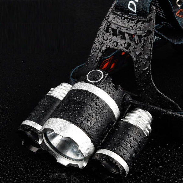 Strong Light Long-Range Rechargeable Three-Head Lamp Outdoor Fishing Lamp Led Head-Mounted Flashlight (1T6 x 2XPE Without Battery)