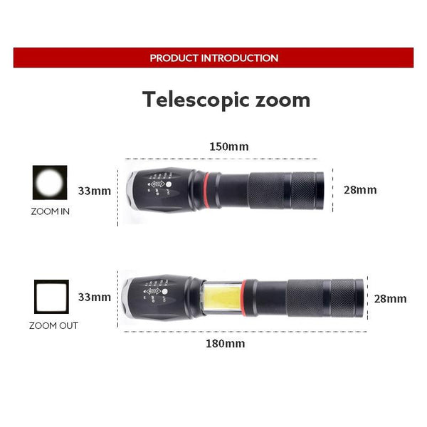 1. T6 lamp beads, strong long-range ability, wide irradiation range, long battery life