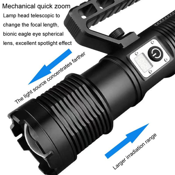 3. Mechanical high-speed zoom, light head retractable to change the focal length, bionic eagle eye spherical lens, excellent spotlight effect