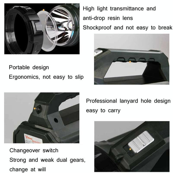 YAGE 5701 10W LED Strong Light Long-Range Searchlight Outdoor Lighting Rechargeable Flashlight, CN Plug(Ink Green)