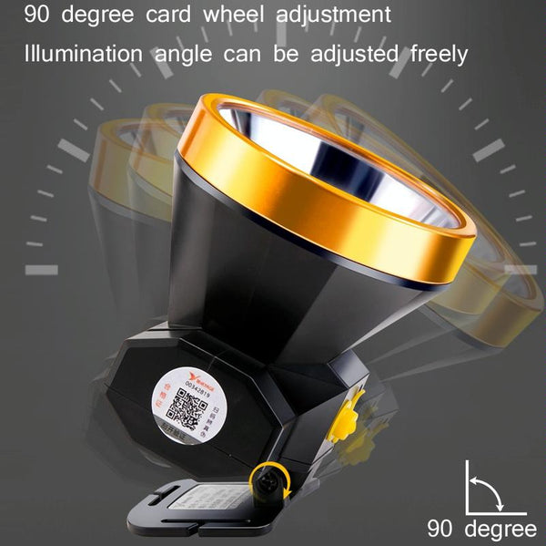 YAGE U110 LED Glare Rechargeable Headlight Outdoor Night Fishing Head-Mounted Flashlight, CN Plug(Black Golden)