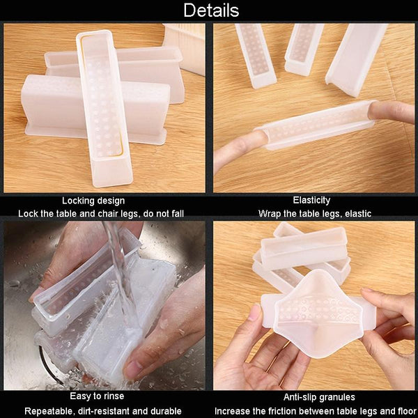 4pcs /Set Childrens Bed Feet Silicone Fixed Anti-Slip Mat Silent Wear-Resistant Bed Feet Protector(White)