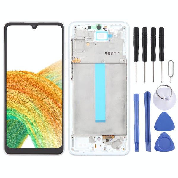 Restore your Samsung Galaxy A33 5G (SM-A336) to pristine condition with this high-quality white LCD screen and digitizer assembly. This complete unit includes the frame for a seamless repair experience.