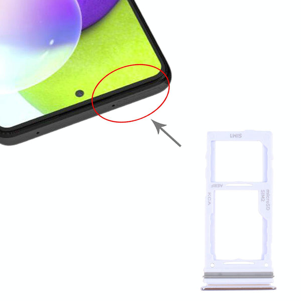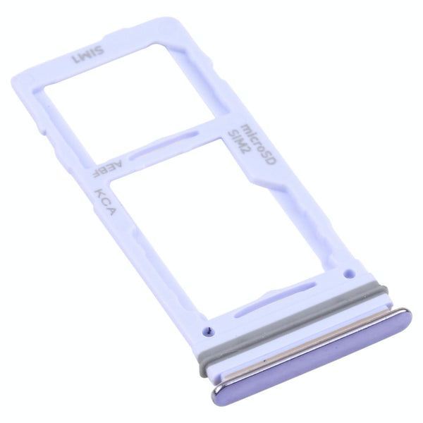 Search terms: Samsung Galaxy A52, SM-A525, SIM card tray, SD card tray, Micro SD card tray, SIM tray replacement, SD tray replacement, purple SIM tray, repair part, replacement part, mobile phone repair.