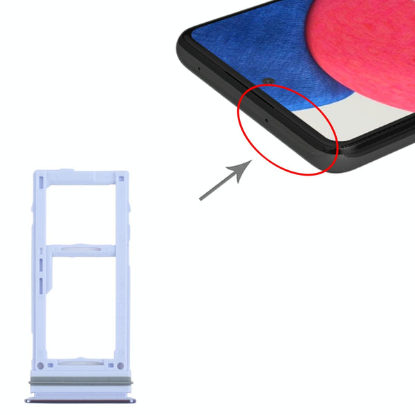 Search terms: Samsung Galaxy A52S 5G, SM-A528, SIM tray, microSD tray, memory card tray, SIM card holder, dual SIM, purple SIM tray, replacement SIM tray, repair part, mobile phone parts.