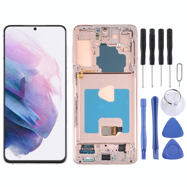 Restore your Samsung Galaxy S21+ 5G (SM-G996) to its former glory with this premium gold LCD screen and digitizer replacement. This complete unit includes the LCD, digitizer, and frame, making installation straightforward. Perfect for repairing a cracked, damaged, or malfunctioning screen, this replacement will breathe new life into your device.