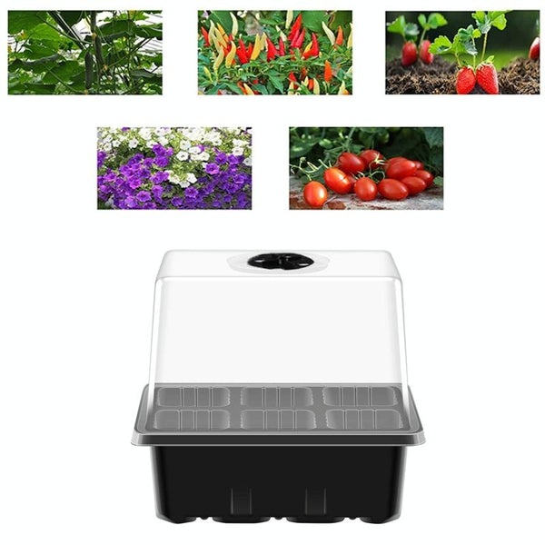 12-Hole Heightened Succulent Vegetable Seedling Pot With Lid(Black)
