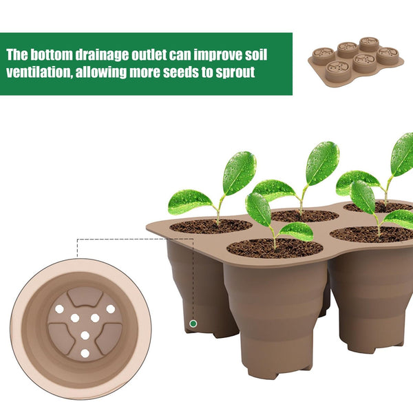 6 Holes Nursery Box Small Vegetable Flower Plant Breathable Growing Tray Silicone Folding Nursery Pot(Brown)
