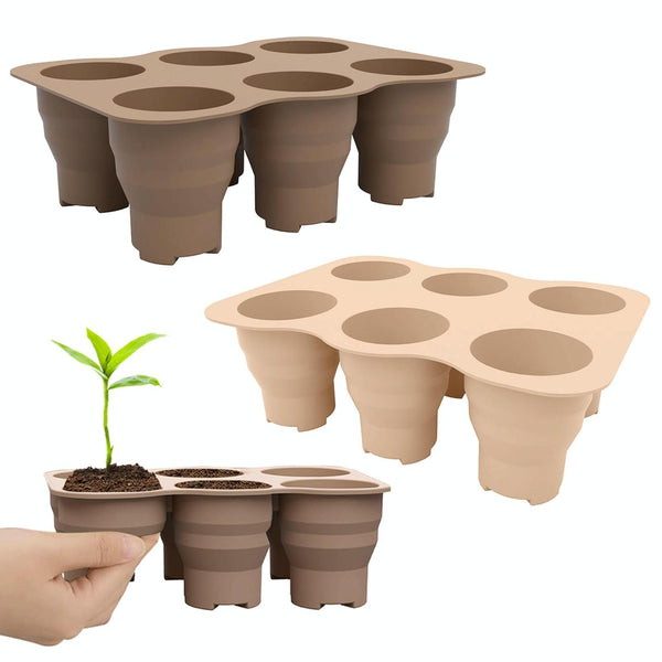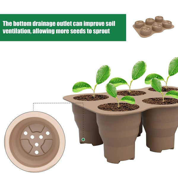 6 Holes Nursery Box Small Vegetable Flower Plant Breathable Growing Tray Silicone Folding Nursery Pot(Skin Color)
