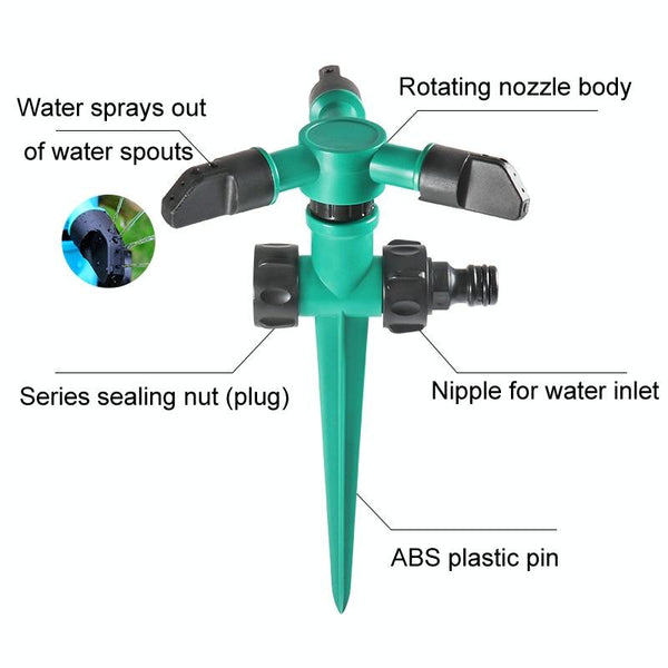 Automatic Rotating Plastic Ground Sprinkler Garden Lawn Triangle Spraying Nozzles(Green)