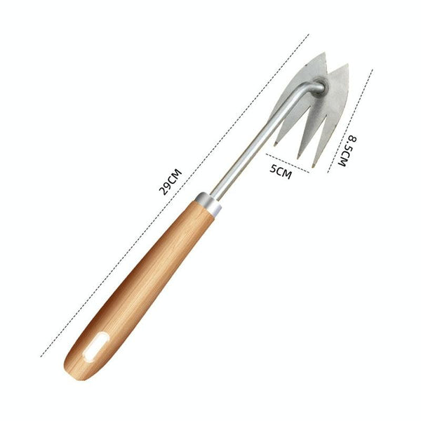 Four-Tooth Dual Purpose Weed Remover Tool Gardening Weed Rake Uprooting Weeding Tool, Length: 29cm V-head Wood Handle