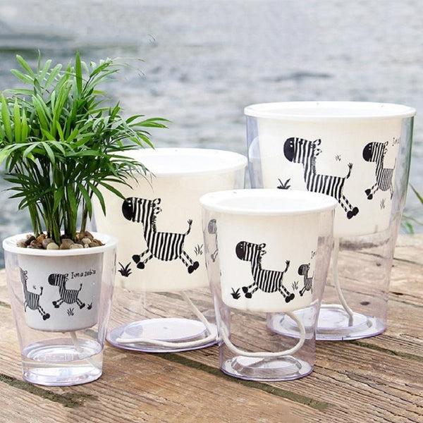 Fully Transparent Hydroponic Flower Pots Water Level Visible Non-Broken Glue Self-Absorbent Plastic Flower Pots, Size: W05 Caliber 13cm(Full Transparent Zebra Pattern)