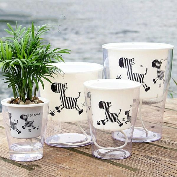 Fully Transparent Hydroponic Flower Pots Water Level Visible Non-Broken Glue Self-Absorbent Plastic Flower Pots, Size: W09 Caliber 17.5cm(Full Transparent Zebra Pattern)
