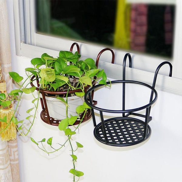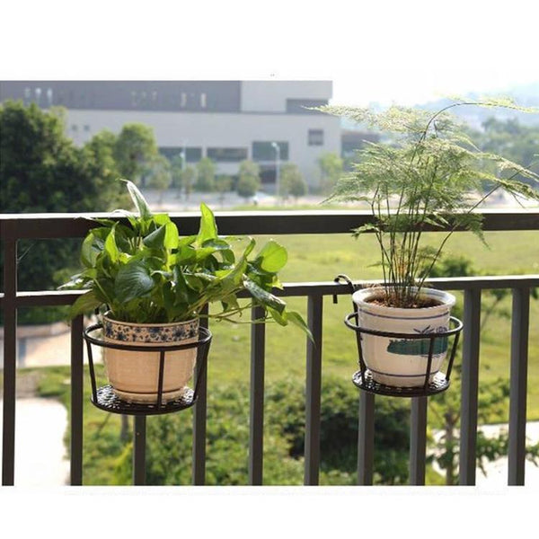 Iron Metal Railing Potted Plant Shelves Hanging Flowerpot Rack (Bronze)