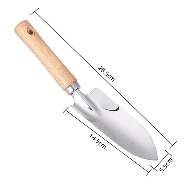 8. Single piece size: about 28x8.5cm for wide shovel, about 28.5x5.5cm for narrow shovel, about 21.5x6.5cm for three-tooth rake