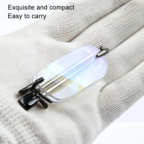 250 Degrees With Lighter Shape Clip Belt Case Anti-Blue Light Rimless Folding Presbyopia Glasses