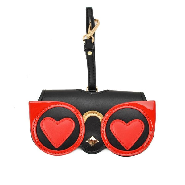 Cute And Funny PU Sunglasses Case Portable Glasses Case With Hanging Buckle, Colour: Red Love Cat Girl