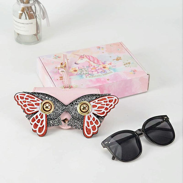 Cute Quirky PU Sunglasses Case Portable Glasses Bag with Hanging Buckle, Color:Butterfly Flower Ring Pink