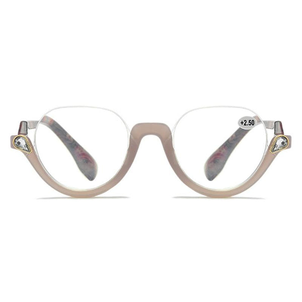 Diamond Studded Cat Eye Presbyopic Glasses Half-frame Fish-filament Glasses Unisex, Degree: +100(Gray Purple)