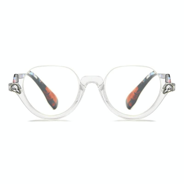Diamond Studded Cat Eye Presbyopic Glasses Half-frame Fish-filament Glasses Unisex, Degree: +200(Transparent Flower Feet)