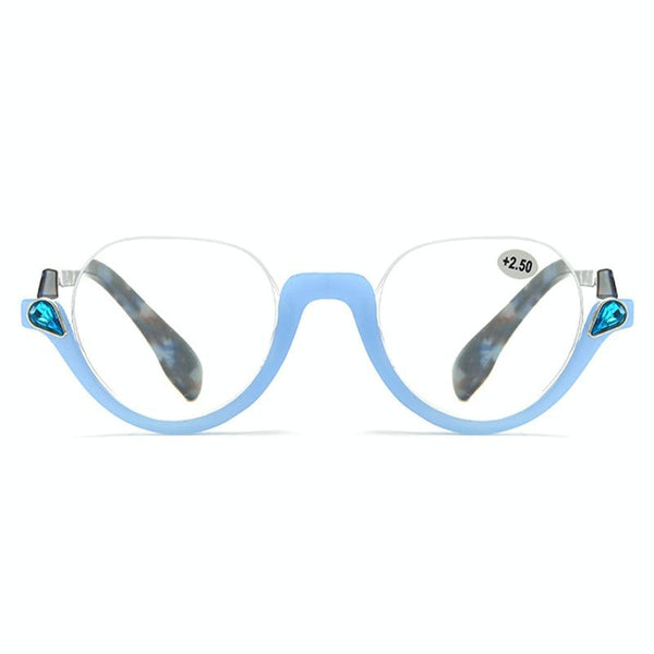 Diamond Studded Cat Eye Presbyopic Glasses Half-frame Fish-filament Glasses Unisex, Degree: +250(Light Blue)