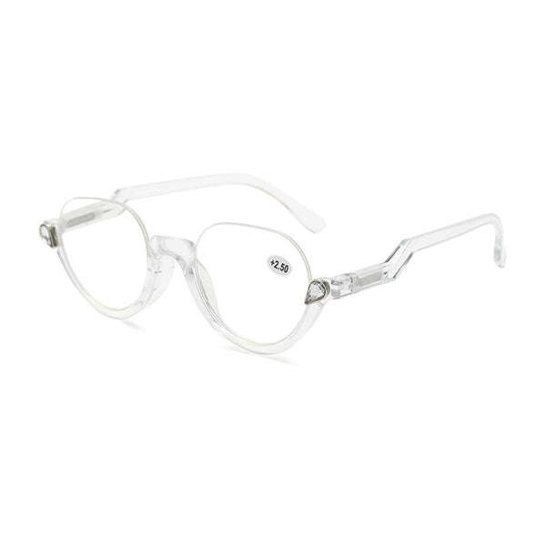 Diamond Studded Cat Eye Presbyopic Glasses Half-frame Fish-filament Glasses Unisex, Degree: +250(Transparent)