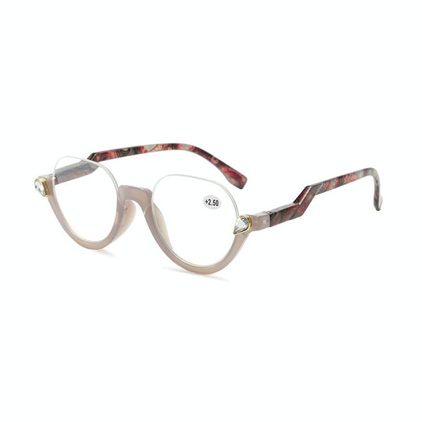 Diamond Studded Cat Eye Presbyopic Glasses Half-frame Fish-filament Glasses Unisex, Degree: +300(Gray Purple)