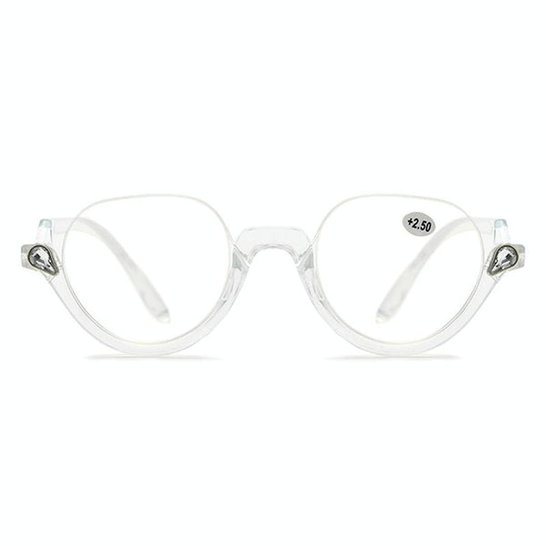 Diamond Studded Cat Eye Presbyopic Glasses Half-frame Fish-filament Glasses Unisex, Degree: +300(Transparent)