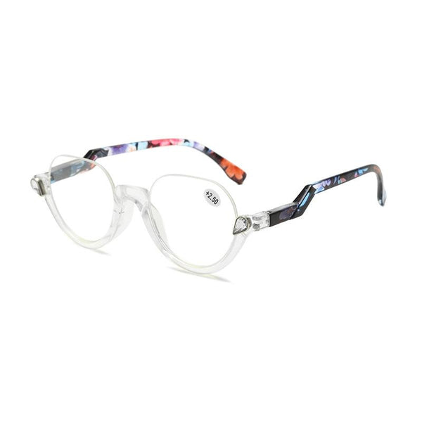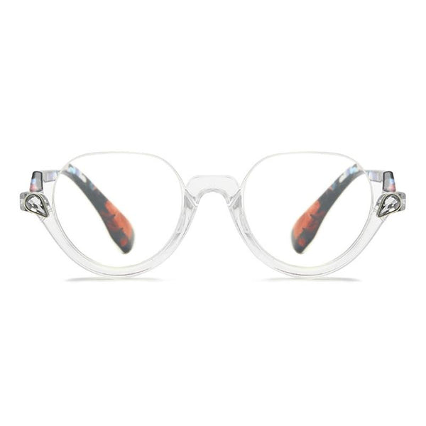 Diamond Studded Cat Eye Presbyopic Glasses Half-frame Fish-filament Glasses Unisex, Degree: +400(Transparent Flower Feet)